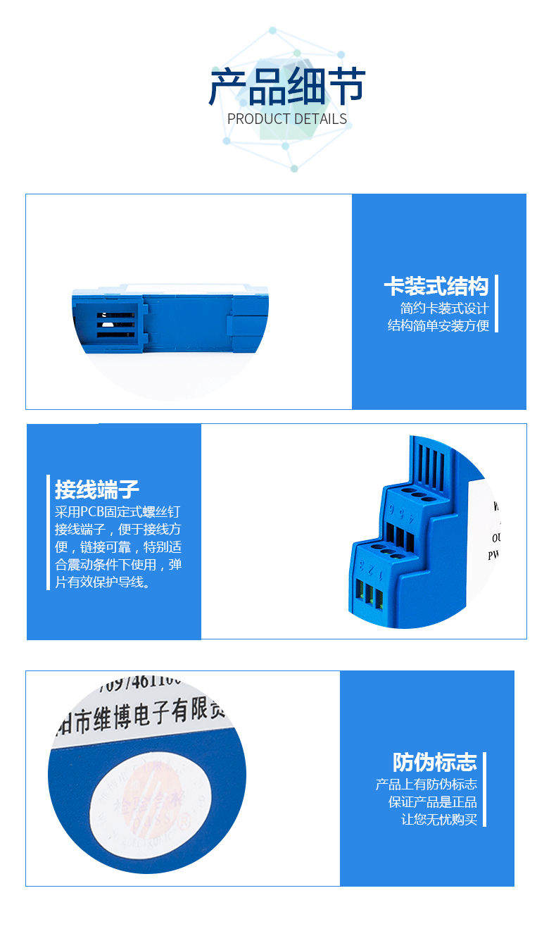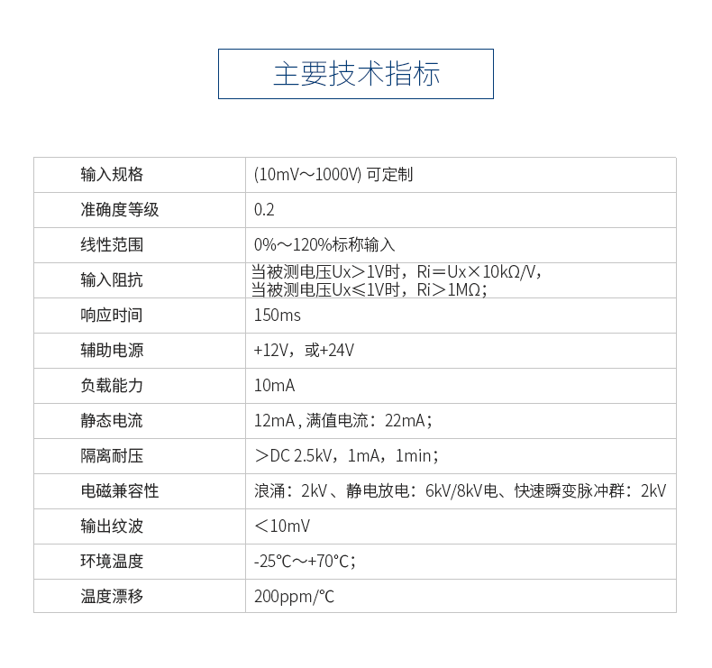 本產(chǎn)品采用調(diào)制解調(diào)型隔離原理,對(duì)電網(wǎng)或電路中的直流電壓進(jìn)行實(shí)時(shí)測(cè)量,將其變換為標(biāo)準(zhǔn)的直流電壓(Uz)輸出;具有高精度、高隔離、低漂移、溫度范圍寬等特點(diǎn)。輸入、輸出回路完全隔離,輸出信號(hào)與電源共地,可以直接與各型A/D轉(zhuǎn)換器配接,構(gòu)成數(shù)據(jù)集中采集系統(tǒng)。該產(chǎn)品適用于電力系統(tǒng)、郵電系統(tǒng)、鐵路監(jiān)測(cè)系統(tǒng)等的實(shí)時(shí)檢測(cè)。